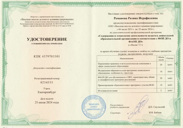 КПК воспитателя Романовой Р. И.
