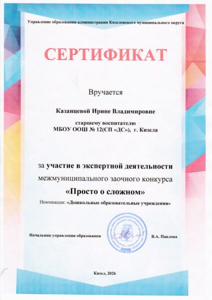 УСПЕХИ старшего воспитателя Казанцевой И. В. Работа с сайтом 2026 год 2025 год 2024 год 2022 год Выписка из приказа PDF 2021 год 2020 год 2019 год 2018 год 2017 год 2016 год 2015 год 2014 год 2013 год