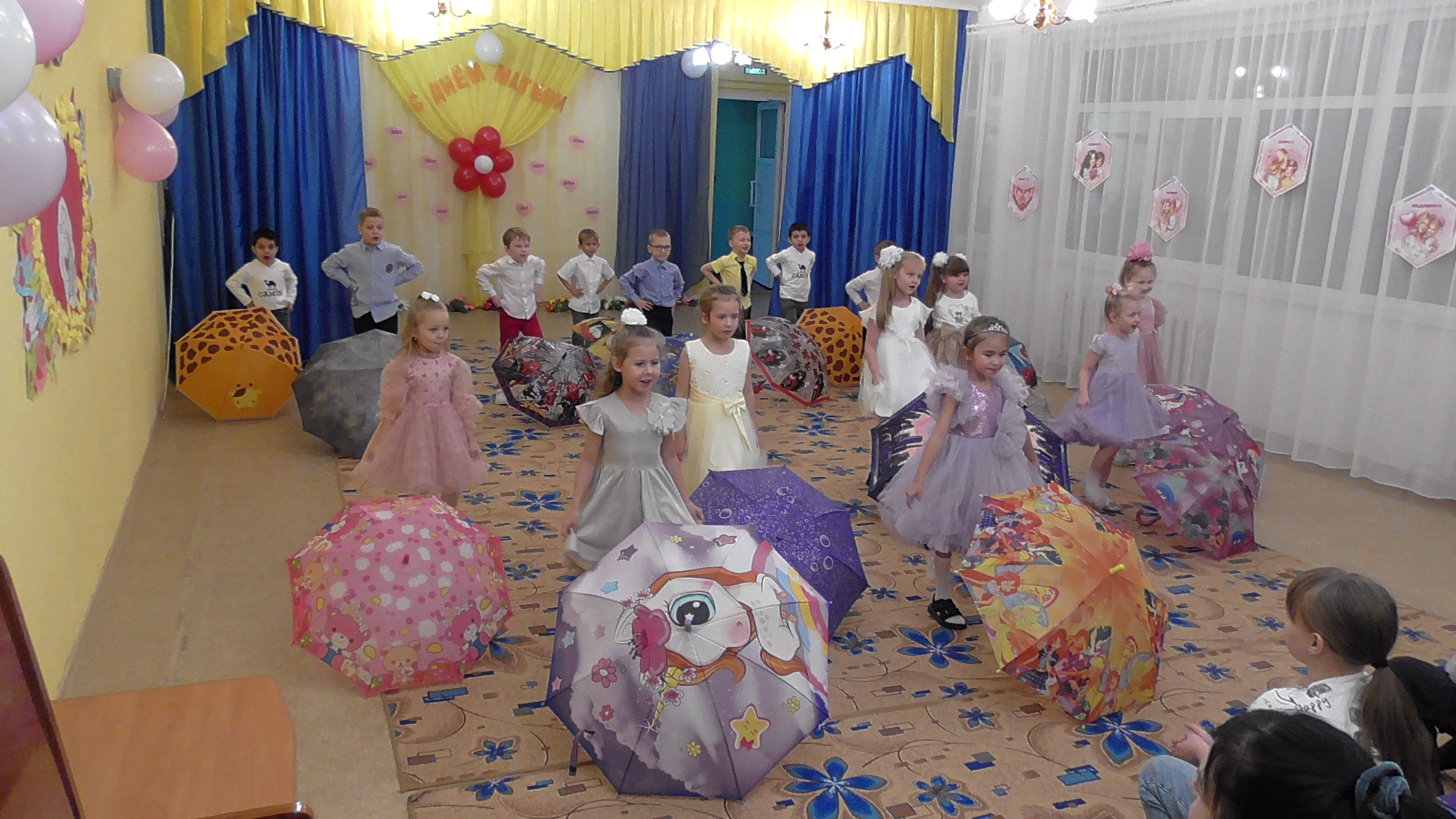 На концерте дети пели песни, показали сценку, танцевали, читали стихи. В нашем зале царила тёплая и эмоциональная атмосфера. Нам очень приятно было видеть добрые и нежные улыбки мамочек, счастливые глаза детей!