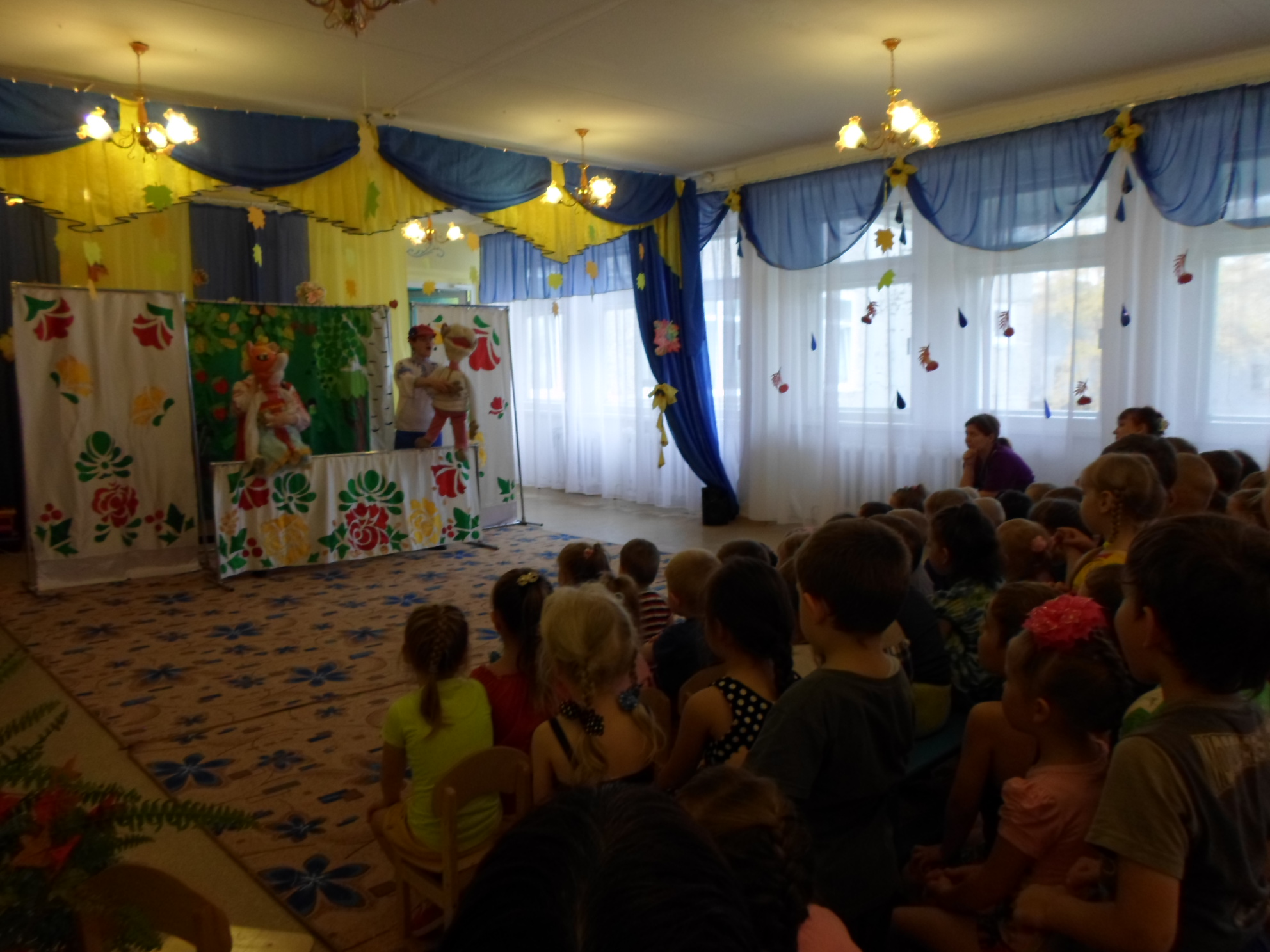25 сентября 2015 года в средней группе «Кораблик» прошло развлечение «Как ёжик Ерофей осень искал», которое провели воспитатели Федосеева Ж. И. и Моружева М.В. Дети охотно путешествовали по лесу вместе с ёжиком. На пути им встретились Рябинка, Мишка, Белочка, которые играли, пели песни с ребятами и подсказали им, как найти осень. В конце путешествия ёжик Ерофей вместе с мамой Ежихой угостили детей дарами осени.